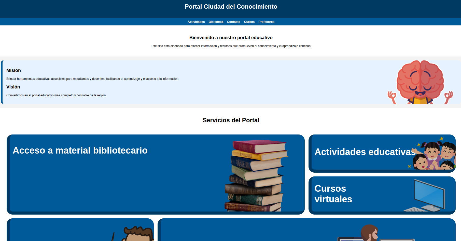 Home, Contact, Library, Teachers, Courses, and Activities. We will use HTML and CSS.